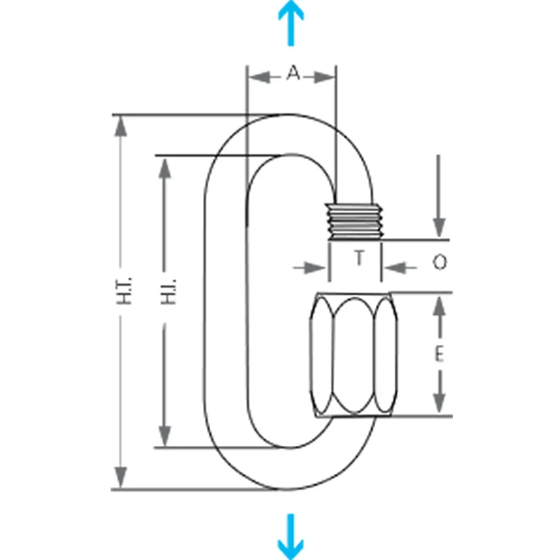 Resistencia: · CMU: 240 kg (El CMU es la Carga Máxima de Uso, que es el peso máximo recomendado que puede soportar el conector sin comprometer la seguridad) · CR: 1400 kg (El CR es la Carga de Rotura, límite absoluto de carga que el maillon rapide puede soportar antes de romperse)