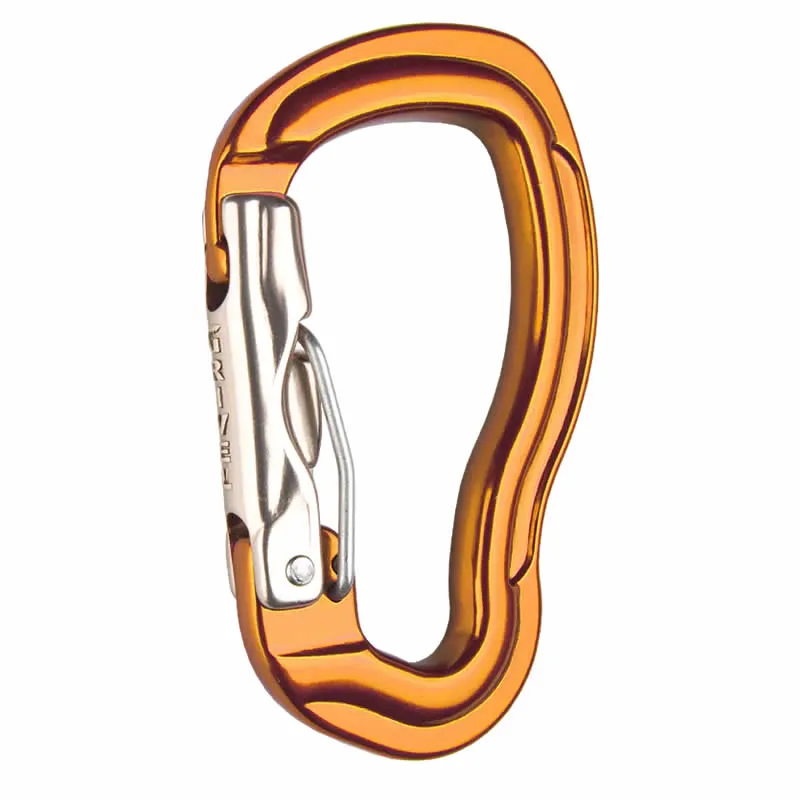 · Mosquetón multiusos con forma ergonómica. Muy fácil de usar, combina el manejo eficiente con la seguridad, gracias al innovador sistema Wire-Lock, en el que la fuerza viene dada por la puerta maciza que se mueve libremente, y el alambre interior mantiene la puerta en posición cerrada.
