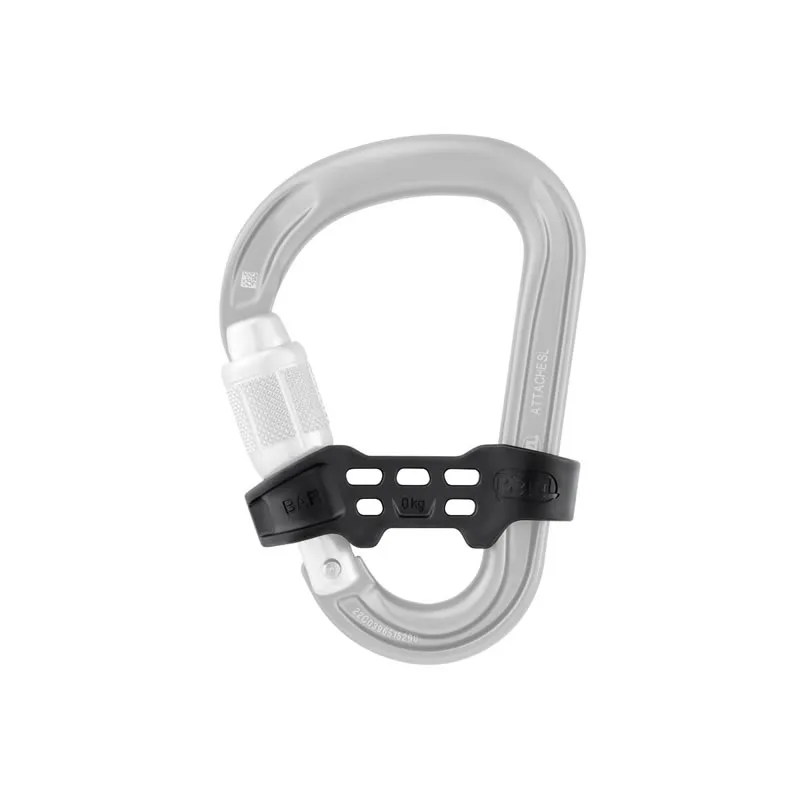 Permite una utilización unidireccional del mosquetón ATTACHE en el que se coloca, favoreciendo la solicitación del mosquetón según su eje mayor durante el aseguramiento o el encordamiento en el glaciar.
