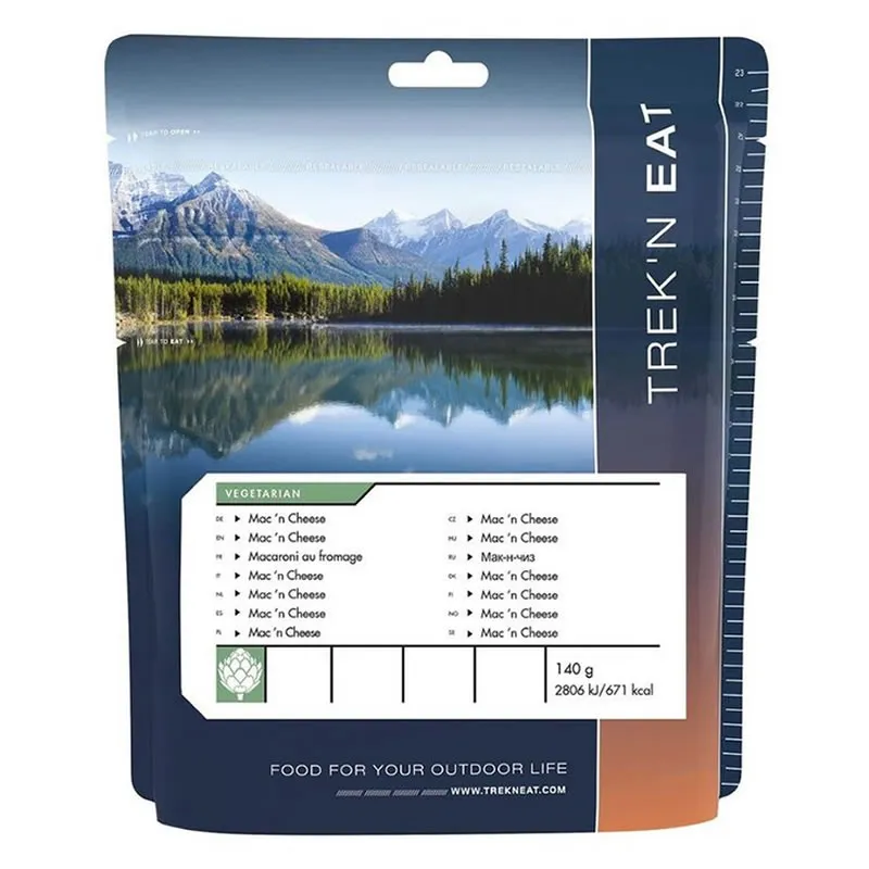 El plato de pasta con queso vegetariano de la marca Trek´n Eat es una receta vegetariana sin lactosa que te aportará más de 600 Kcal. Este plato con ingredientes 100% naturales se rehidrata rápidamente, 5 minutos, basta con agregar agua hirviente directamente en la bolsa hasta la línea de llenado.