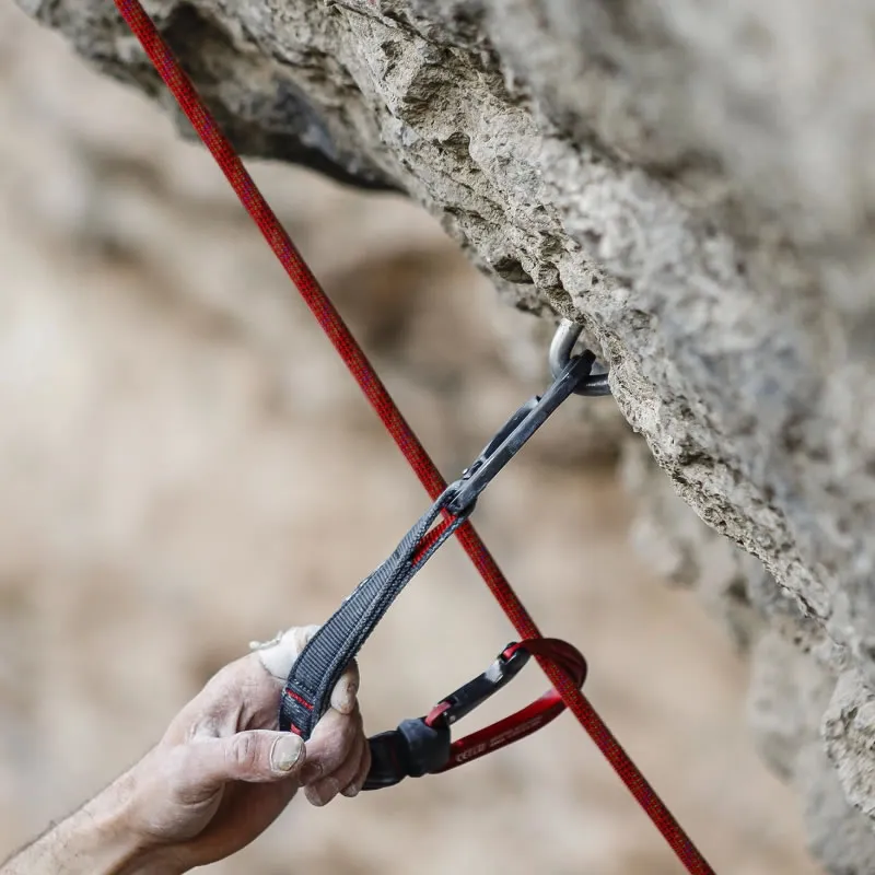 Disponible en tres longitudes (12, 18 y 24 cm), es ideal para escalada deportiva, desplomes exigentes y pasos que requieren máxima confianza.
