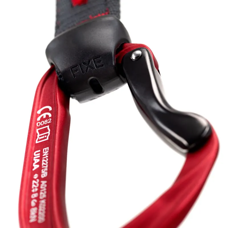 Sus mosquetones ligeros solo presentan acumulación de material en las zonas de contacto con la cuerda y la chapa, para alargar la vida útil de los elementos. A la vez, sus gatillos forjados en caliente facilitan una apertura más fluida que nunca. Todo ello unido por una cinta de poliamida de 25 mm de ancho, con cosido reforzado y una zona de agarre cómoda.