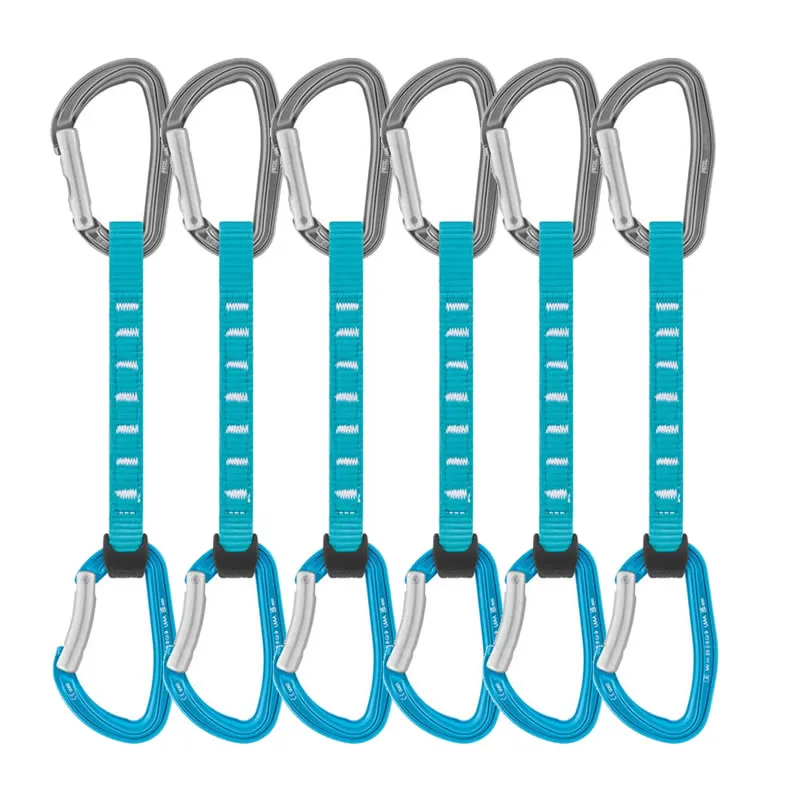 Mosquetones DJINN: - Gran abertura del gatillo para facilitar las manipulaciones. - Sección en forma de H para ofrecer una mejor relación resistencia/ligereza. - Superficies de contacto más anchas para favorecer el paso de la cuerda y reducir el desgaste del mosquetón. - Punta y sistema Keylock diseñados para evitar el enganche accidental del mosquetón durante las maniobras. - DJINN gatillo recto (parte superior de la cinta exprés): facilita el mosquetoneo y el desmosquetoneo. - DJINN gatillo curvo (parte inferior de la cinta exprés): facilita el mosquetoneo de la cuerda.