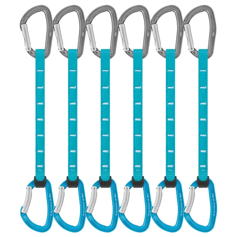 Características: Resistencia cerrado/transversal/abierto: 23/8/9 kN Abertura: gatillo recto 24 mm / gatillo curvo 27 mm Materiales: mosquetón de aluminio, cinta de poliéster y STRING de caucho Certificaciones: CE EN 12275 tipo B, UIAA (mosquetones), CE EN 566 y UIAA (cintas exprés) Peso medida 25 cm: 120 g