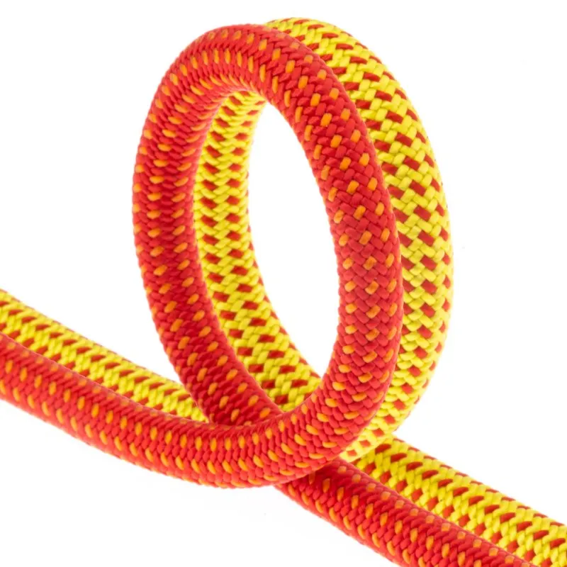 Acabados: · Middle Mark: señaliza la mitad de la cuerda. · 8 Mark: sistema de marcaje que indica que faltan 8 metros para llegar al extremo final de la cuerda. · Reflector: indicador reflectante en los dos extremos de la cuerda. · Ultrasonic cut: endurece los extremos de la cuerda y los protege del desgaste. · Colores disponibles: Amarilla y Roja. · Fabricada en Sant Quirze de Besora (Barcelona – Pirineos).