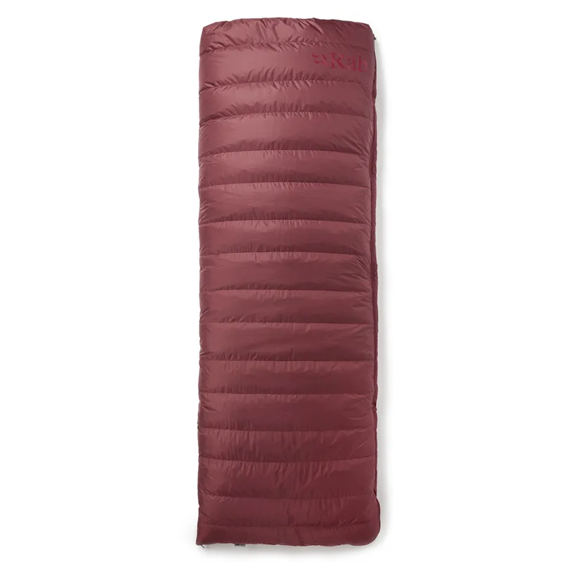 El exterior de Pertex Quantum es suave y compacta. Construcción de caja trapezoidal, para maximizar el espacio y la calidez Aislamiento sintético Stratus utilizado en el deflector del cuello para sellar el calor. Cremallera principal en forma de L con deflector relleno de plumón para atrapar el calor. Bolsillo interior con cremallera YKK Rellenado a mano en Derbyshire, Reino Unido Se puede utilizar como saco de dormir o abrirlo para convertirlo en edredón. Los bolsos de mano izquierda y derecha se pueden unir con cremallera Bolsa de compresión incluida. Bolsa de almacenamiento con cremallera y base resistente al agua para almacenamiento en el hogar. Principal: poliamida 30D reciclada/Pertex Quantum/50 g/m²/DWR sin fluorocarbonos Plumón de pato europeo 650FP con acabado hidrofóbico sin fluorocarbonos Nikwax (700 g)