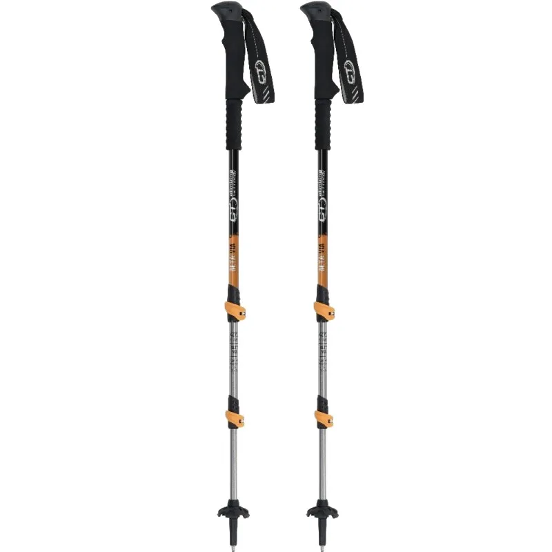 Características técnicas: · 3 secciones fabricadas en aluminio 7075 con sistema Easy-Lock de cierre y regulación (Ø 16-14-12 mm) · Empuñadura en Eva-grip con cinta de regulación, que proporciona gran confort a la mano durante toda la actividad. · Zona antideslizante debajo de la empuñadura. · Punta de Widia, incluye 1 juego de rosetas grandes (nieve) y 1 juego de rosetas pequeñas (trekking) · Longitud útil: 66 - 135 cm. · Peso: 235 g/ud · Made in P.R.C.