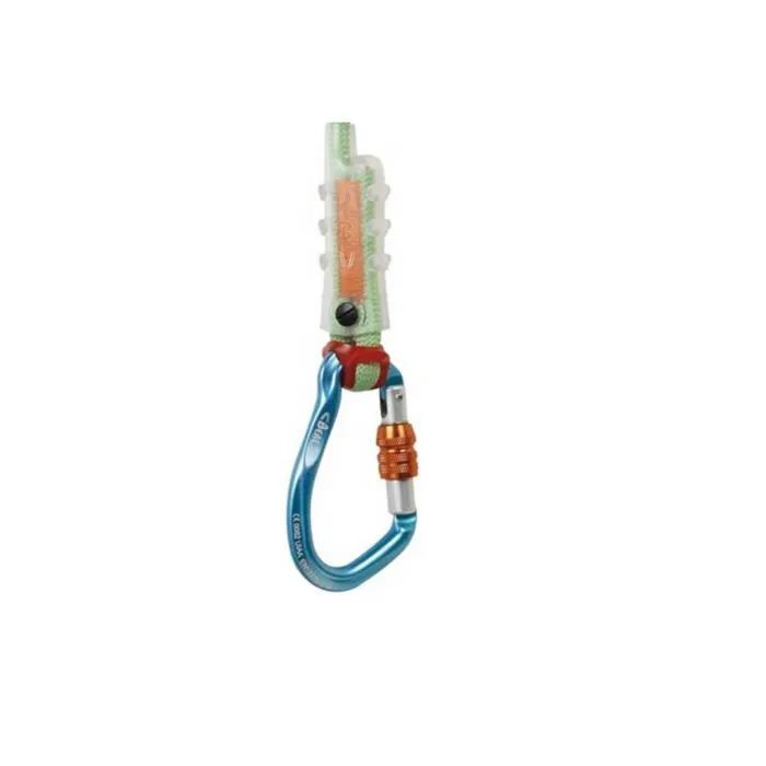 Sistema de fijación del mosquetón al extremo de una cuerda o cinta de amarre.
