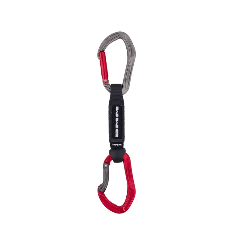 Compuesta por el mosquetón Alpha Sport Pro en su parte superior (gatillo recto) y el Alpha Sport Clip en la inferior (gatillo curvo con muescas para los dedos y facilitar el chapaje), la exprés Alpha Sport combina fácil manejo y ligereza con la robustez garantizada en todos los productos DMM.