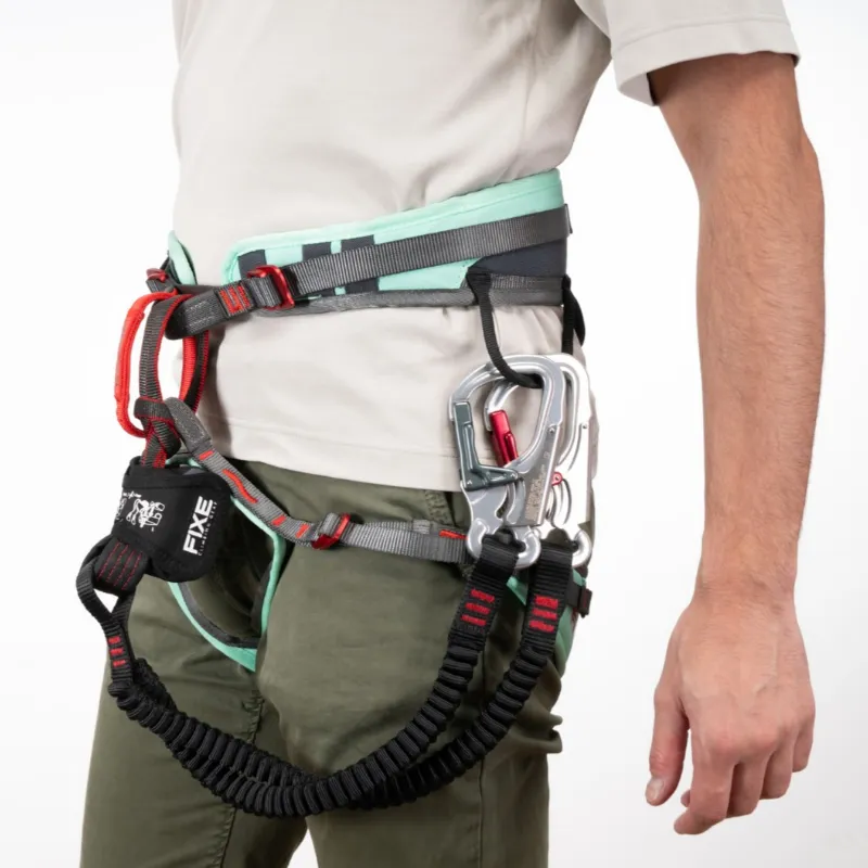 · El Ferratum Cinchless de Fixe redefine la seguridad y el confort en vías ferratas. Su innovador sistema Cinchless, patentado por Fixe, une el disipador al arnés sin comprimirlo, reduciendo el efecto péndulo y dejando el anillo ventral libre para mayor versatilidad.
