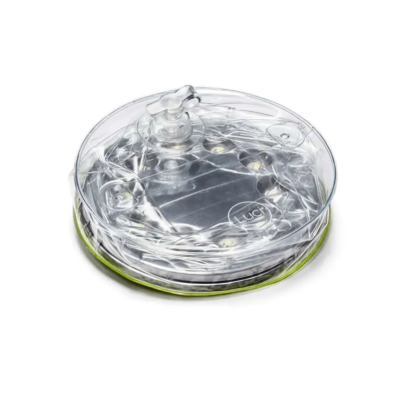 Especificaciones: - Acabado: transparente - Peso: 125 g - Diámetro: 12.7 cm - Altura: 10.2 cm inflado / 2.5 cm plegado - 4 modos de luz mediante 10 LED blanco frio · baja (hasta 15 lúmenes / dura hasta 24 h) · medio (hasta 35 lúmenes / dura hasta 12 h) · alto (hasta 75 lúmenes / dura hasta 6 h) · intermitente 1 segundo parpadeando. (hasta 50 h) - Apagado rápido: mantenga presionado el botón de encendido durante 3 segundos. - Indicador de nivel de batería de 4 LED / Batería de iones de litio de 1000 mAh - Carga en 7 horas de luz solar directa / Carga en 3 horas a través de USB - Resistente al agua: clasificación IP67 / Sumergible hasta 1m. - Temperatura de funcionamiento: 0 ° C - 45 ° C. - Protección contra sobrecargas y sobredescarga / Protección contra sobrecorriente y cortocircuito. - Garantía durante el primer año contra defectos del fabricante. - Calidad 100% probada y certificada por estándares internacionales. - 100% fabricado oficialmente por la marca registrada Luci de MPOWERD.