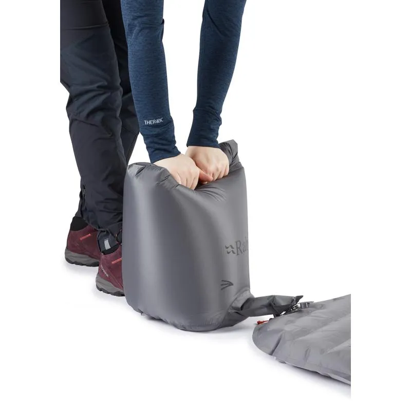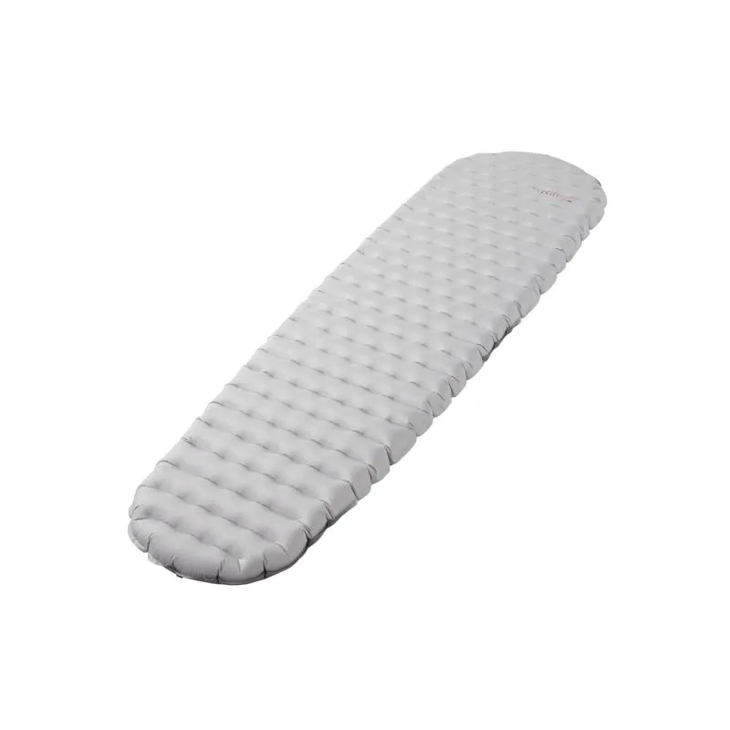 Puntos clave · Extremadamente ligera, con solo 340 g en talla regular · Forma momia tapered, que elimina volumen innecesario · Tejido 20D ultraligero y suave al tacto · Válvula bidireccional y saco de inflado, para un montaje rápido en vivac · Valor R: 1,4 · Grosor: 8 cm · Tamaño plegado: 15 x 9 cm · Incluye funda enrollable y kit de reparación