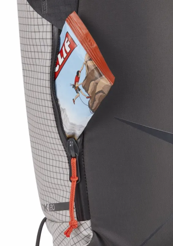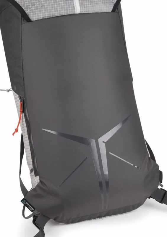Acabada con un DWR sin fluorocarbono y un forro reciclado, la mochila tiene un diseño aerodinámico que reduce el peso y es perfecta para los alpinistas que cuentan los gramos.