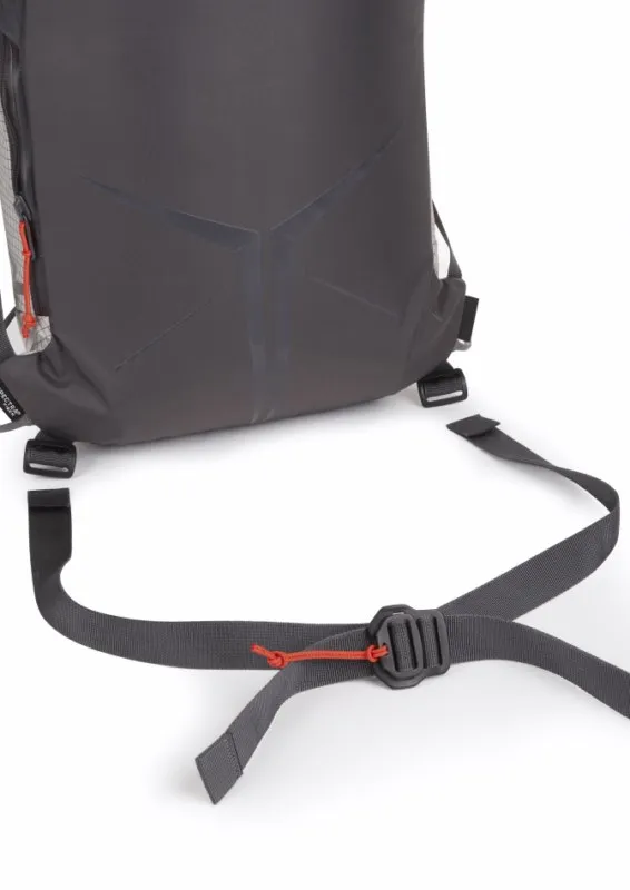 Esta mochila de escalada y alpìnismo ultrarresistente a la abrasión ha sido diseñada para mantener el peso y el volumen al mínimo absoluto, con un arnés de pecho ligero Mono Mesh y un cinturón extraíble para perder más peso cuando sea necesario.