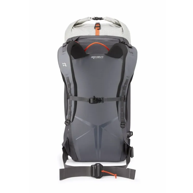 Especificaciones: · Volumen : 28 L · Dimensiones : 56x31x20cm · Peso : 0,81 kg · Longitud de la espalda: 48 cm · Sistema de espalda : X-SHIELD™ · Código de producto : QAP-29 · Construcción de tela parcialmente reciclada, resistente y liviana, protege contra herramientas afiladas, rocas y bordes de esquí. · Entrada superior enrollable y acceso al bolsillo trasero con cremallera · Correa de esternón con silbato para llamar la atención. · El tensor superior estabiliza la carga cerca de su cuerpo. · Cinturón lumbar con hebilla de aluminio de fácil liberación. · Piezas desmontables para días de montaña ligeros · 2 accesorios para piolet HeadLocker con pestaña extraíble · Correa de transporte segura con cuerda, desmontable para mayor flexibilidad ·Cadena tipo margarita para conectar equipo adicional · Correas de compresión ligeras con ganchos de metal resistentes, que funcionan como portaesquís con estructura en A · Tejido Cordura ultra resistente con Spectra® Ripstop · Panel trasero para quitar la nieve con espuma extraíble. · Cordura 210D con Spectra® Ripstop / Hydroshield Dura y 50 % reciclado 420 PW / Hydroshield