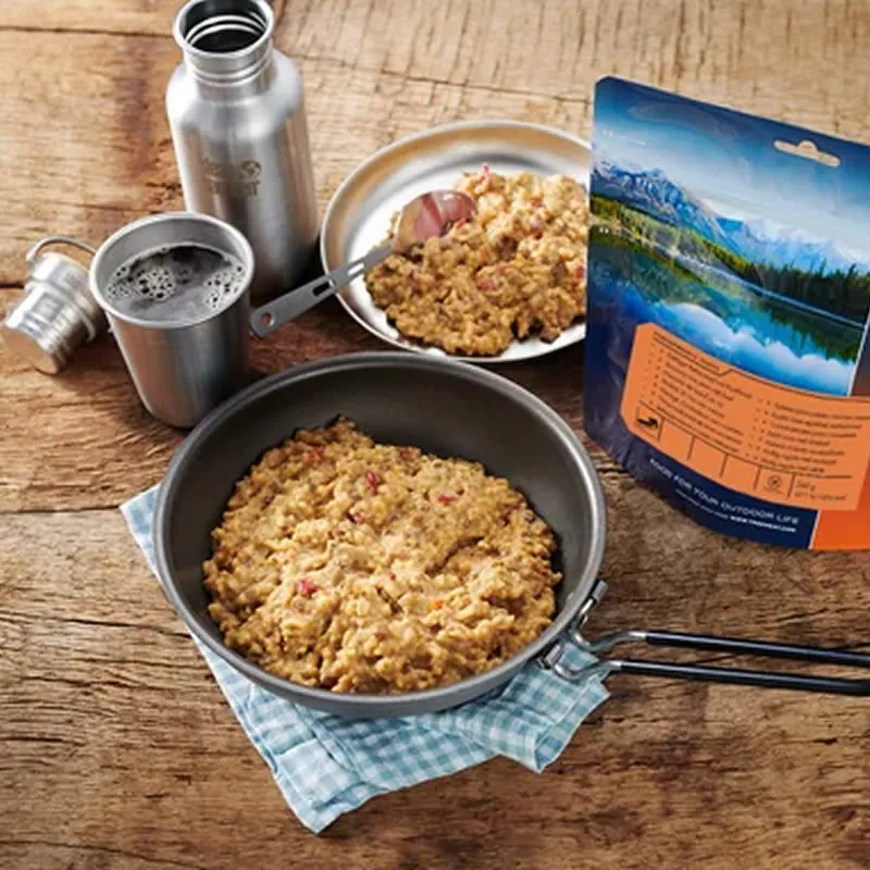 Ya sea en viajes, expediciones, en barcos o excursiones familiares en la naturaleza, los platos TREK'N EAT para exteriores en una bolsa de pie resellable son fáciles de preparar y están hechos de ingredientes de alta calidad con sabor auténtico. La liofilización preserva las vitaminas y los minerales, al mismo tiempo que los platos no contienen conservantes ni potenciadores del sabor. El abundante guiso de arroz con carne de res hace 1006 kilocalorías de larga duración y proporciona hierro y carbohidratos importantes. El plato gourmet, inspirado en el clásico ruso "Boeuf Stroganoff", fortalece el cuerpo y la mente para un mayor esfuerzo. Para la preparación solo hay que añadir agua a la bolsa (hay una línea de llenado). La facilidad de preparación, el peso ligero y el ahorro de combustible son otras ventajas que hacen de los platos TREK'N EAT la dieta ideal sobre la marcha.