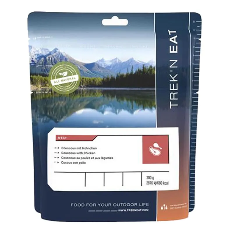 Aquí está una de las numeras recetas que ofrecemos de cuscús con pollo que satisfará los entusiastas de aventuras al aire libre. Este plato liofilizado está envasado en una bolsa con cierre y línea de llenado muy práctica.